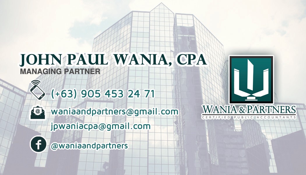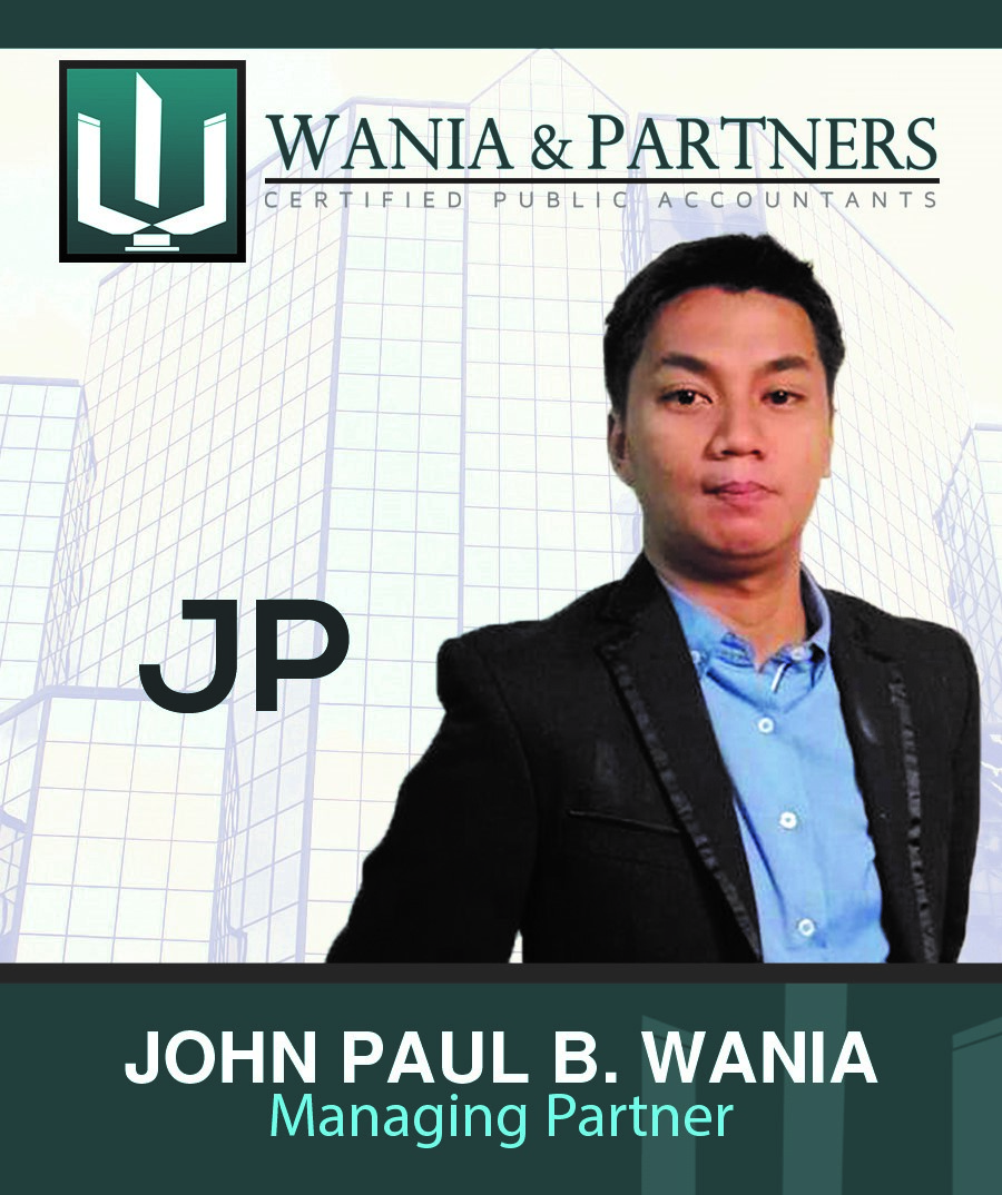 John Paul Wania is a Certified Public Accountant graduated Bachelor of Science in Accountancy from University of the East, Manila. He is currently pursuing his Juris Doctor Degree at the Arellano School of Law.John Paul’s seven years extensive and diversified practice of corporate tax has gained him specialization in tax compliance, tax audits and refunds for various industries in accordance to the regulations of the Bureau of Internal Revenue (BIR), Local Government Unit (LGU) and other regulatory agencies. In addition, he wass also a part-time Review Instructor for aspiring Accounting Technicians at Topnotch CAT Review Center.